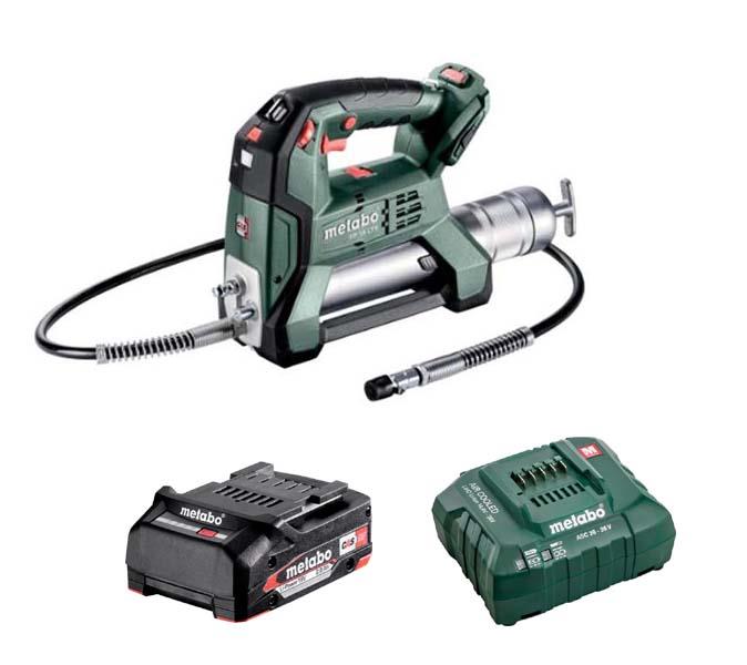 Kompakte Akku-Fettpresse mit 2 Arbeitsstufen und hohem Auspressdruck (max. 690 bar) für die mobile Wartung von Maschinen und Anlagen Sauberes Arbeiten durch Voreinstellung der Auspressmenge über Stellrad mit 10 Stufen Auswahl zwischen hohem Druck und hoher Durchflussgeschwindigkeit je nach Anwendung Optimale Sicht beim Abschmieren durch LED direkt am Gehäuse und eine weitere LED zum Fixieren am Schlauchende Schalterarretierung für anwenderfreundliches Arbeiten im Dauerbetrieb 3-Wege-Befüllung: Fettkartuschen, Gebinde oder Direktbefüllung Integriertes Entlüftungsventil für konstanten Arbeitsfortschritt Magnet zum Befestigen auf Metall (Zubehör), praktischer Schultergurt und langer Schlauch mit Halterung für flexible Einsatzbereiche. inklusive Akku 2,0 Ah und Ladegerät