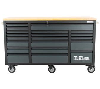 Werkstattwagen Deluxe XXL Anthrazit unbestückt 160 x 91 cm 20 Schubladen Rollenschrank Sideboard Werkbank Werkzeugwagen mit Hartholz Arbeitsplatte