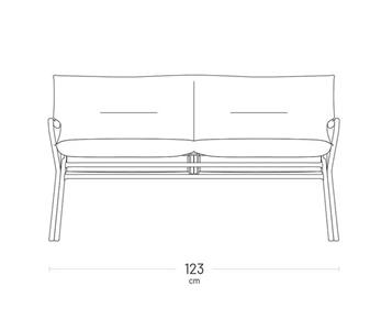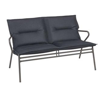 2-Sitzer-Bank mit breiter Sitzfläche zur Außennutzung. Niedrige Sitzhöhe (35 cm)