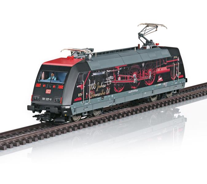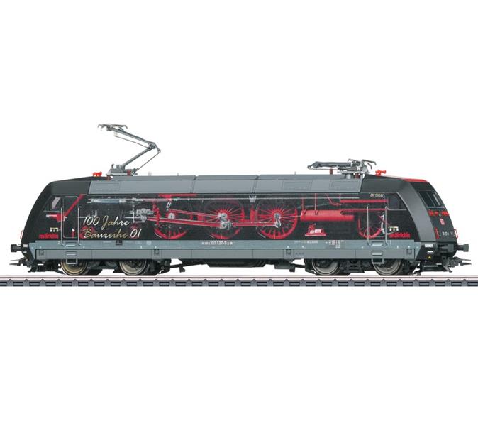 Schnellzuglokomotive Baureihe 101 der Deutschen Bahn AG (DB AG). Werbegestaltung "100 Jahre BR 01". Betriebszustand 2025. Demnächst auch im Original unterwegs.