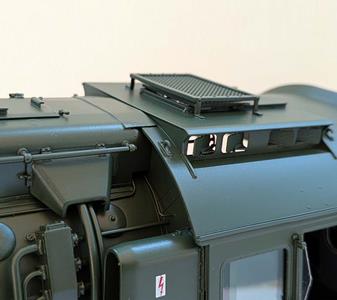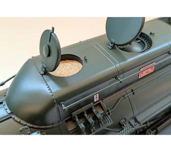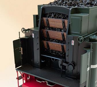 Modell: Modell der Premium Edition, Hochleistungs-Motor, Multiprotokoll-Hochleistungsdecoder mit Energiespeicher und KM1 High-Quality-Sound, Zweikanal TS-16 Soundmodul mit Panorama-Regler für einzelne Betriebsgeräusche, Breitbandlautsprecher, Dynamic Smoke mit Zylinderdampf und Dampfpfeife neuester Generation mit ca. 40 Minuten Laufzeit pro Füllung, voll nachgebildetes 4-Zylinder-Verbundtriebwerk, servoelektronische Umsteuerung, Triebwerksbeleuchtung, Führerstandsbeleuchtung, Feuerbüchsenbeleuchtung, in Fahrtrichtung wechselndes Spitzenlicht, Warmlicht-LEDs, rote Zugschlussbeleuchtung am Tender schaltbar, robuster Kardanantrieb mit rollfähigem und kugelgelagertem Getriebe, Antrieb und Achsen kugelgelagert und gefedert, Radreifen aus Edelstahl, Radsterne mit beidseitig elliptisch profilierten Speichen, Federpuffer, bewegliche Wasserkastendeckel, beweglich federnde Führerhaustüren, funktionsfähige Vorreiber und zu öffnende Rauchkammertüre, Schmierpumpenantrieb, detaillierter Führerstand, originale Schraubkupplungen austauschbar gegen Funktionskupplungen, vorbildgerechte Lackierung und Beschriftung, KM1-Kinelektrik für vorbildgerecht engen Kuppelabstand und zeitgleiches elektronisches und mechanisches Kuppeln von Lok und Tender, Mindestradius 1394 mm, in einfachen Kurven 1176 mm LüP ca. 73,9 cm, Gewicht ca. 7 kg.