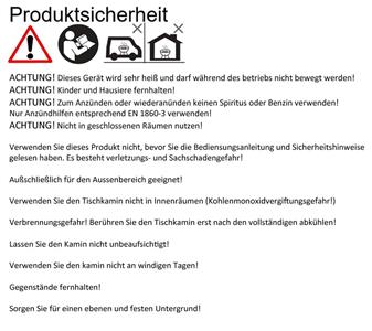 Zum Anzünden oder Wiederanzünden keinen Spiritus oder Benzin verwenden!