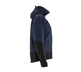 92% Polyester, 8% Elastan, 3-Lagen Softshell, wasserdicht 11.000 mm, winddicht, atmungsaktiv Ret 20,0, Stretch, 265 g/m²